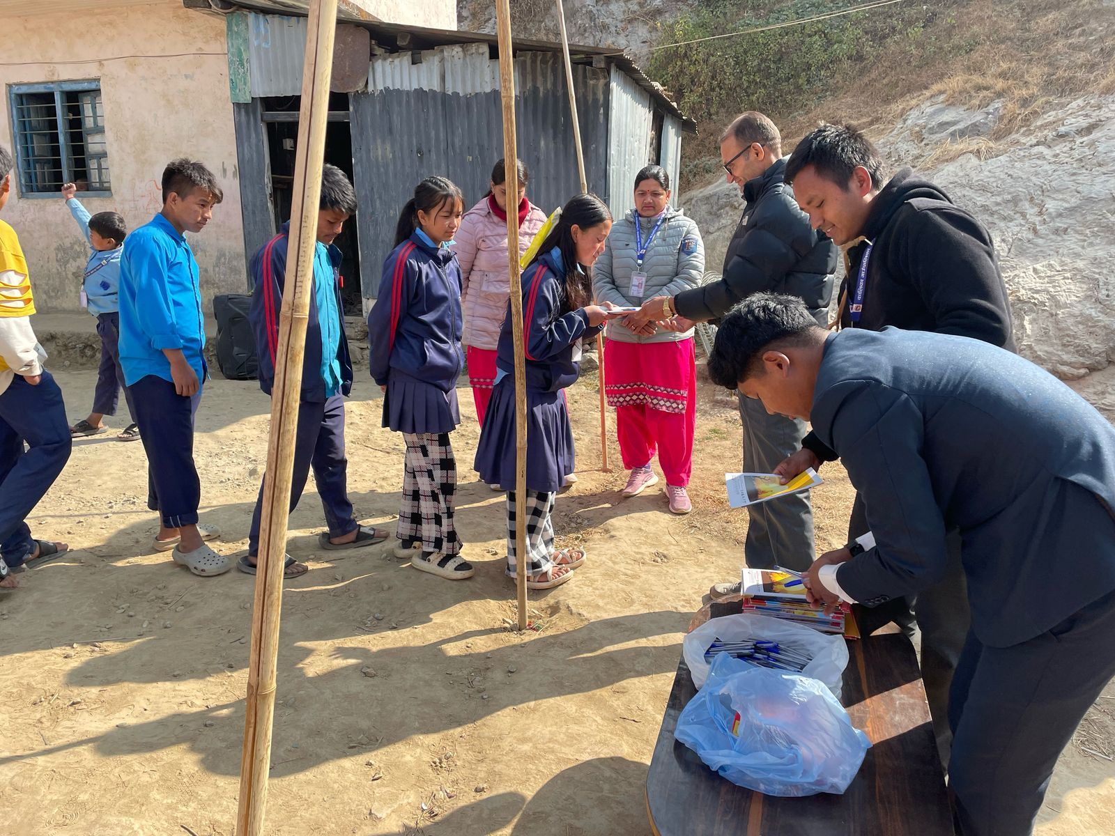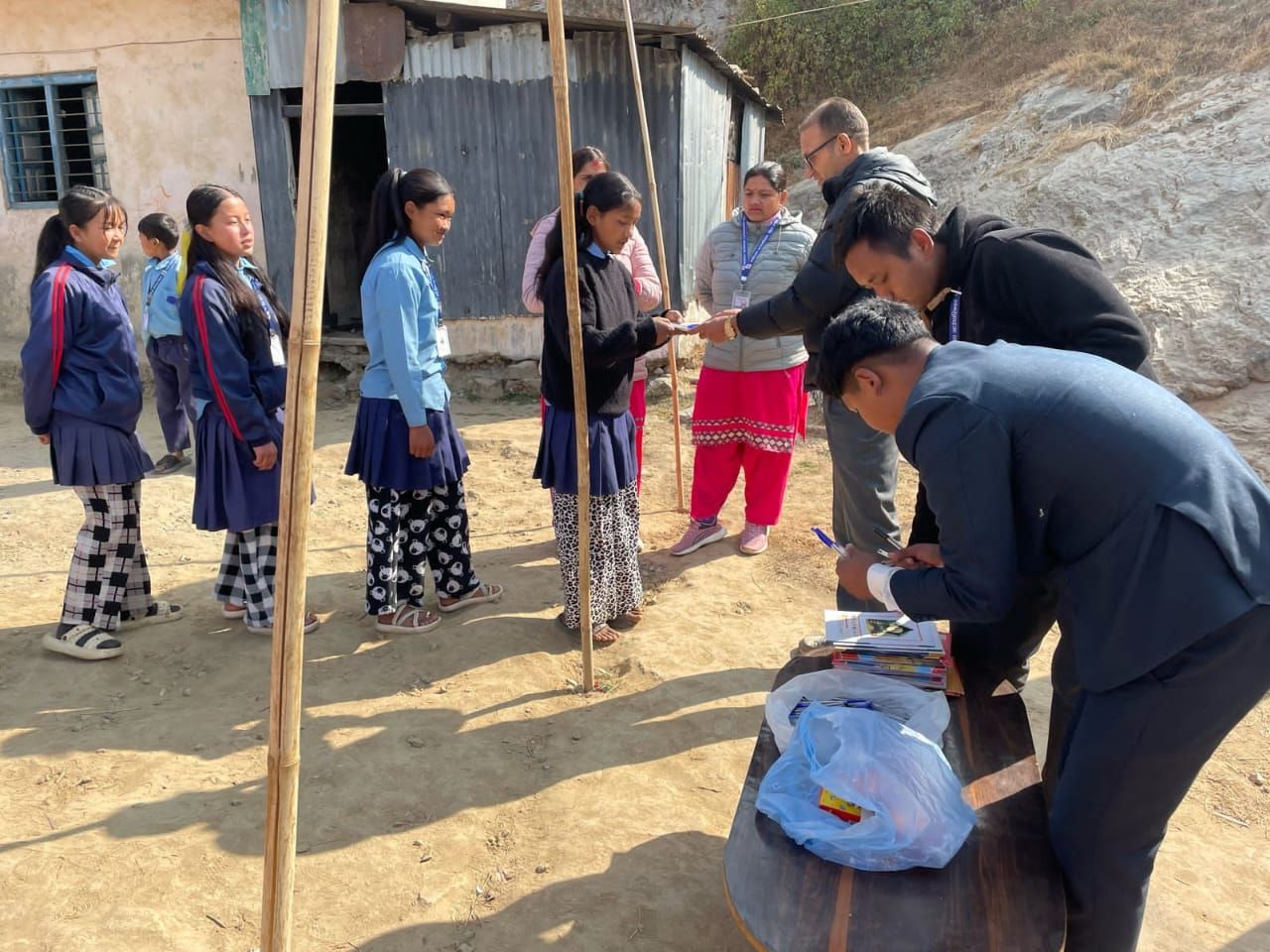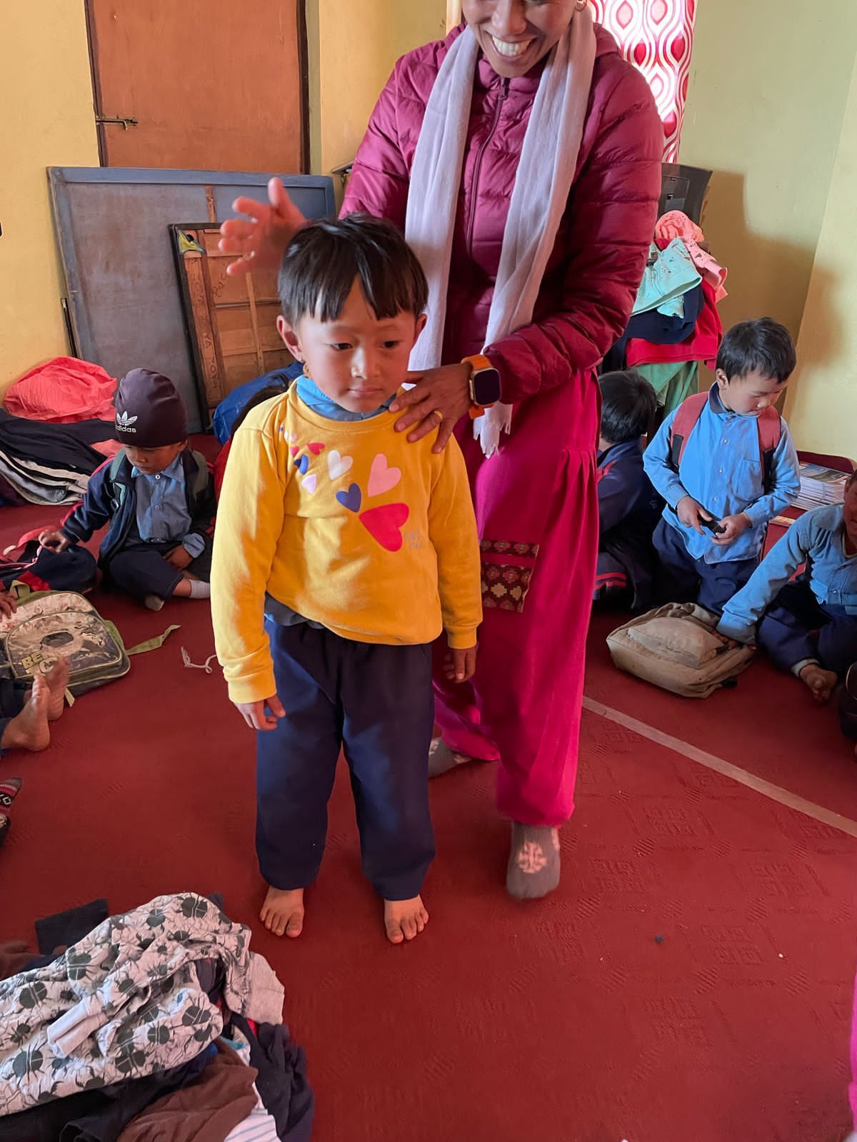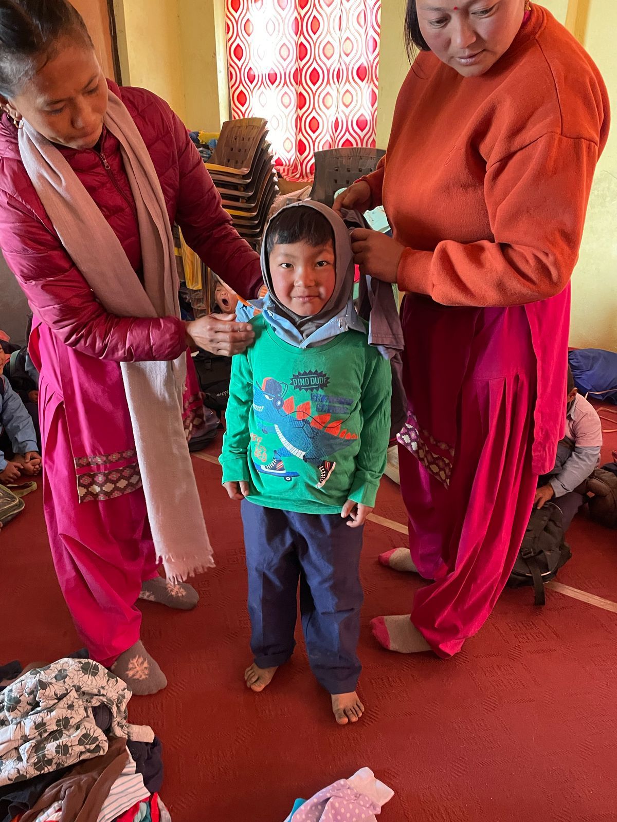 We were also able to implement another concern during our last visit. On our first visit to Grang , we didn't have enough children's clothing with us to give everyone something. launched the "Children clothes for Grang , so we traveled back to Nepal with three large bags full of clothes last autumn; These have now been brought to Grang . There were also booklets & pens for the students. The children's joy was huge - and the new clothing is a great relief for families, especially in the cold months.