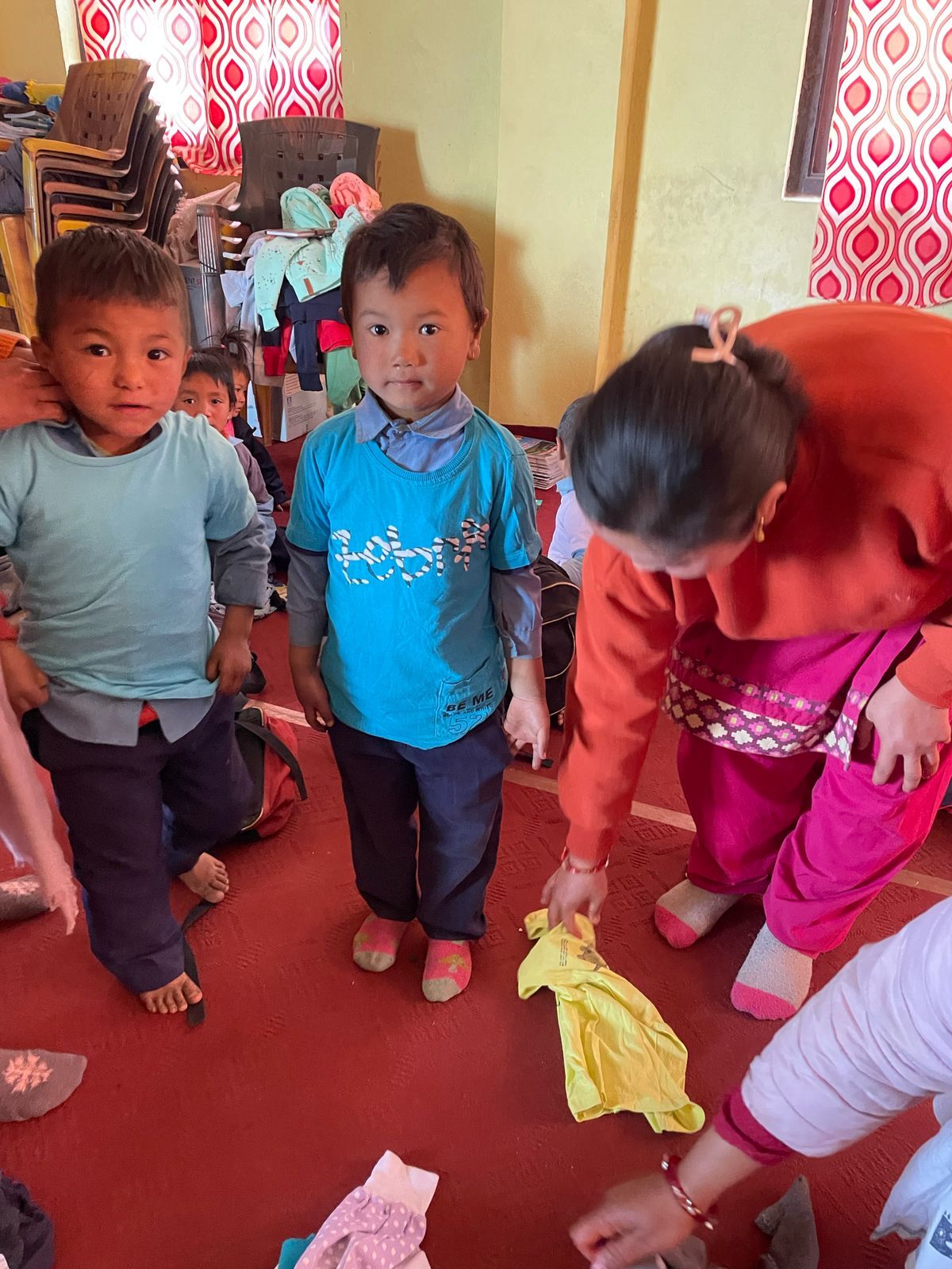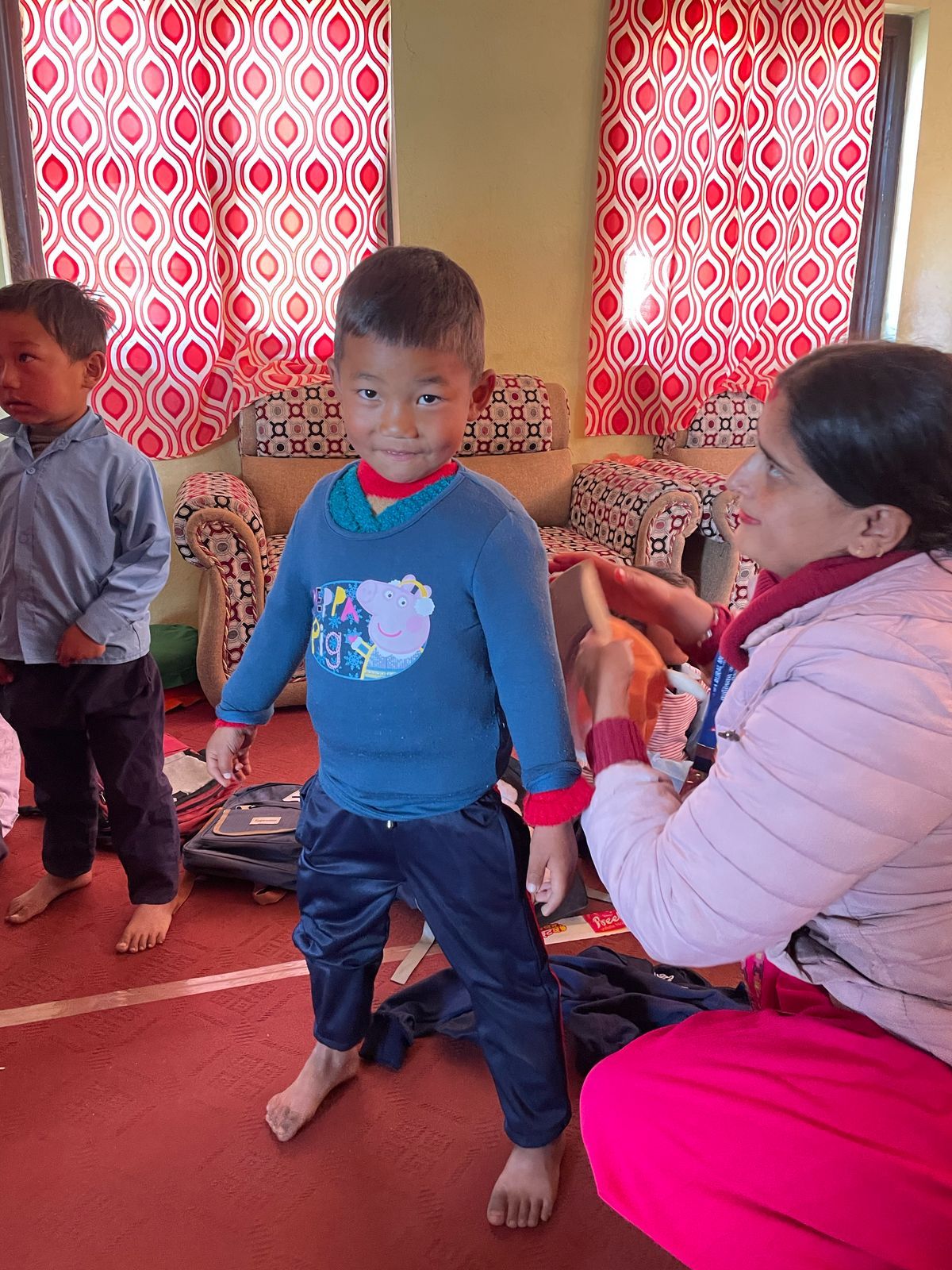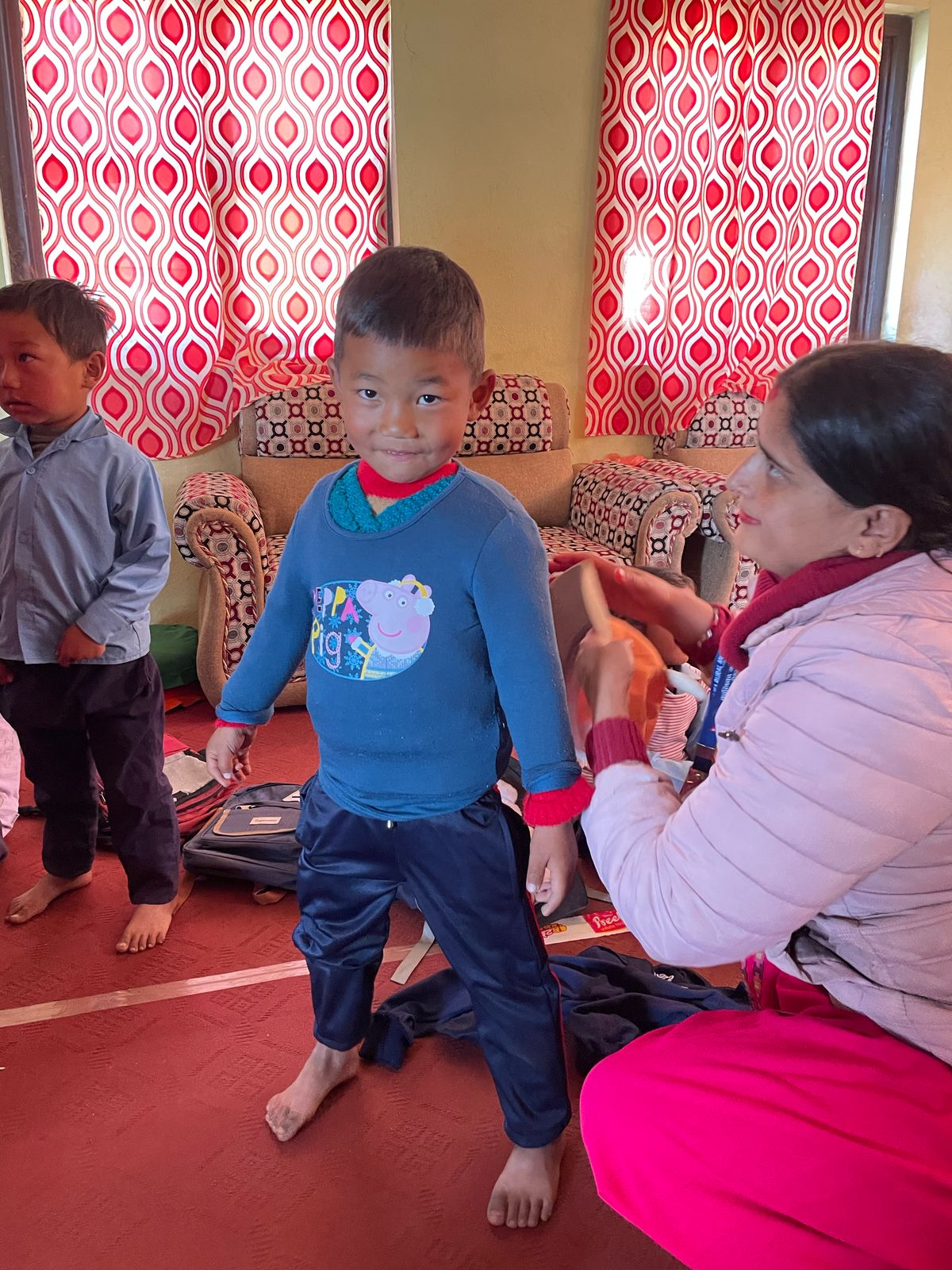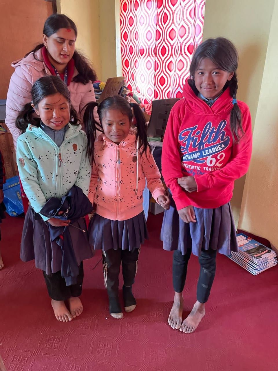 We were also able to implement another concern during our last visit. On our first visit to Grang , we didn't have enough children's clothing with us to give everyone something. launched the "Children clothes for Grang , so we traveled back to Nepal with three large bags full of clothes last autumn; These have now been brought to Grang . There were also booklets & pens for the students. The children's joy was huge - and the new clothing is a great relief for families, especially in the cold months.