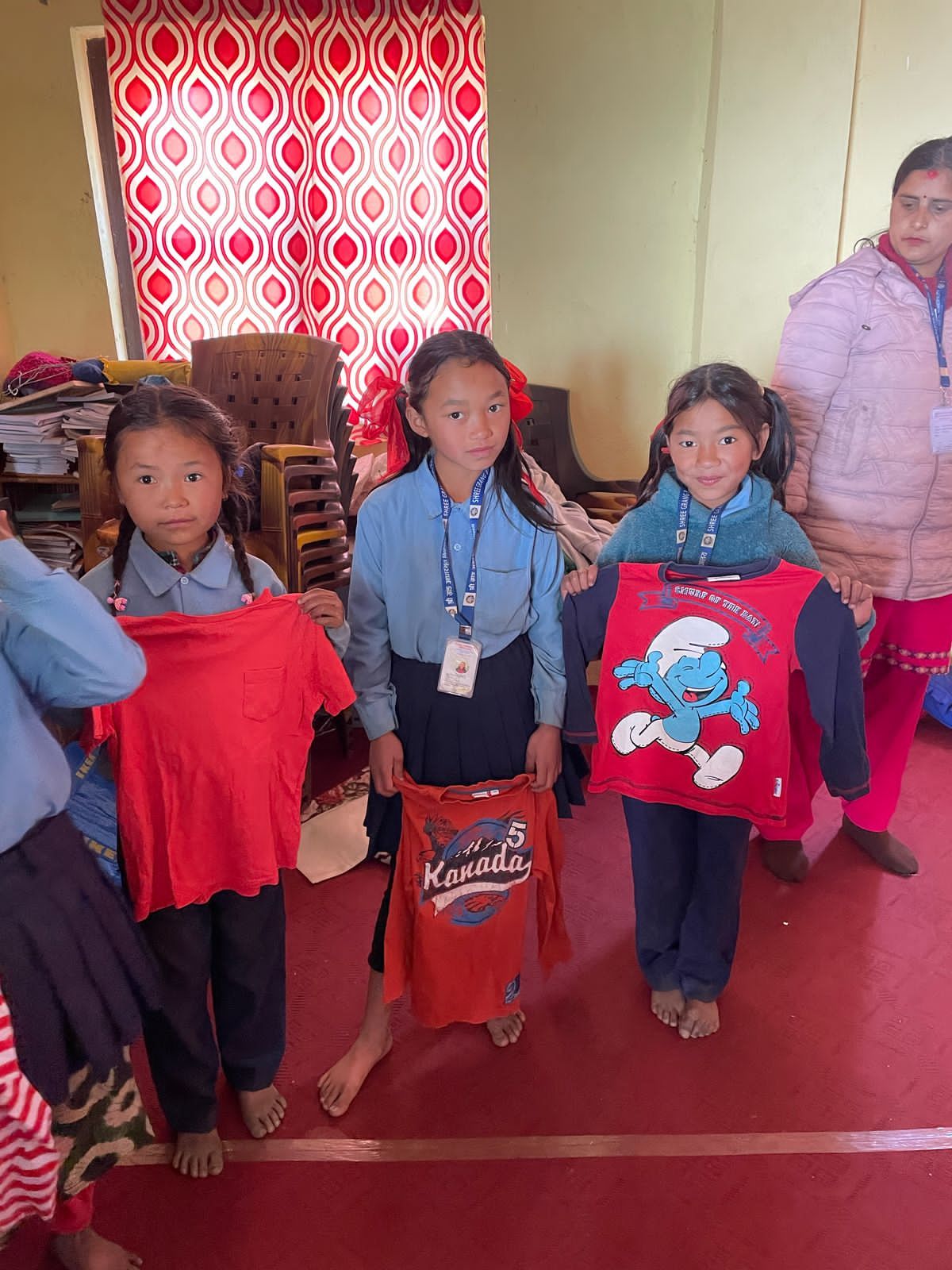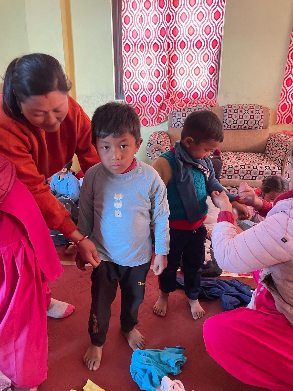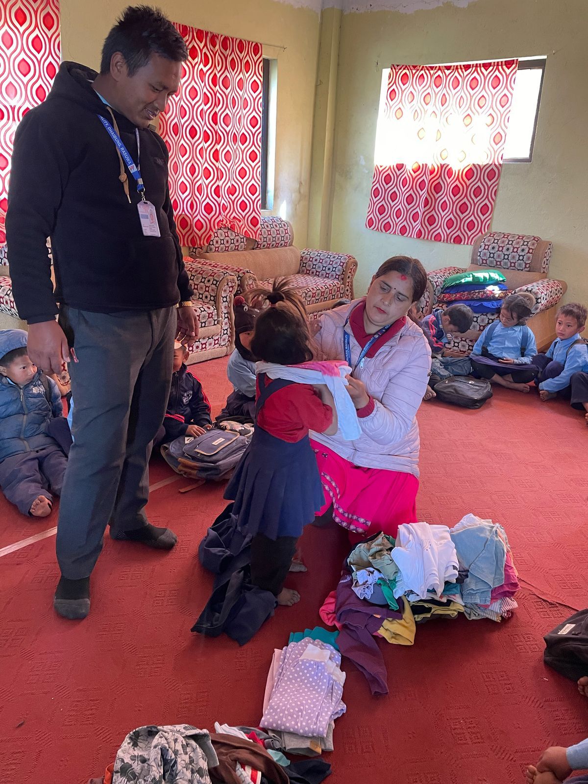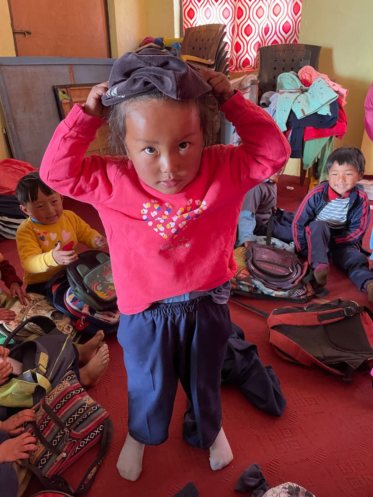 We were also able to implement another concern during our last visit. On our first visit to Grang , we didn't have enough children's clothing with us to give everyone something. launched the "Children clothes for Grang , so we traveled back to Nepal with three large bags full of clothes last autumn; These have now been brought to Grang . There were also booklets & pens for the students. The children's joy was huge - and the new clothing is a great relief for families, especially in the cold months.