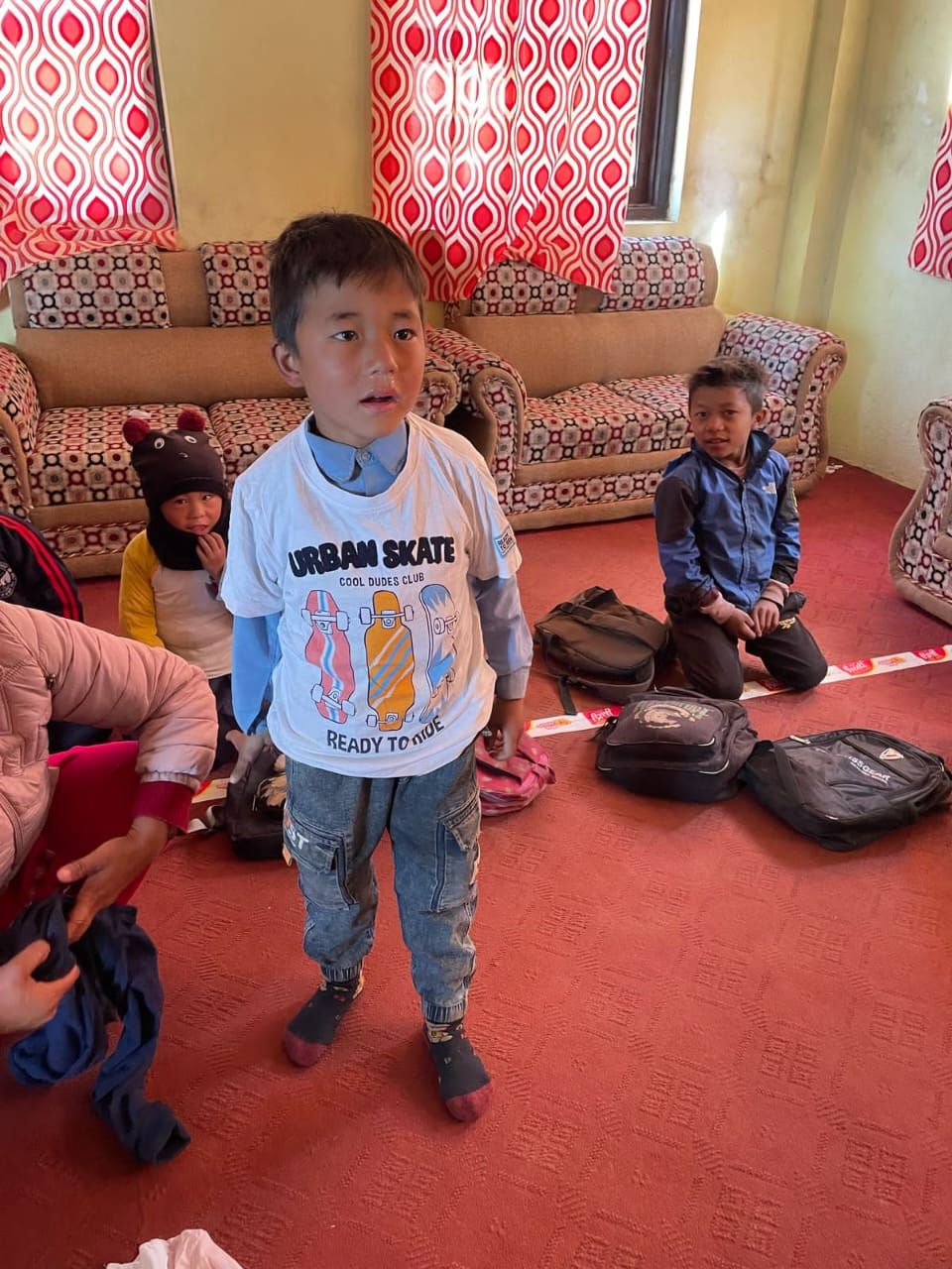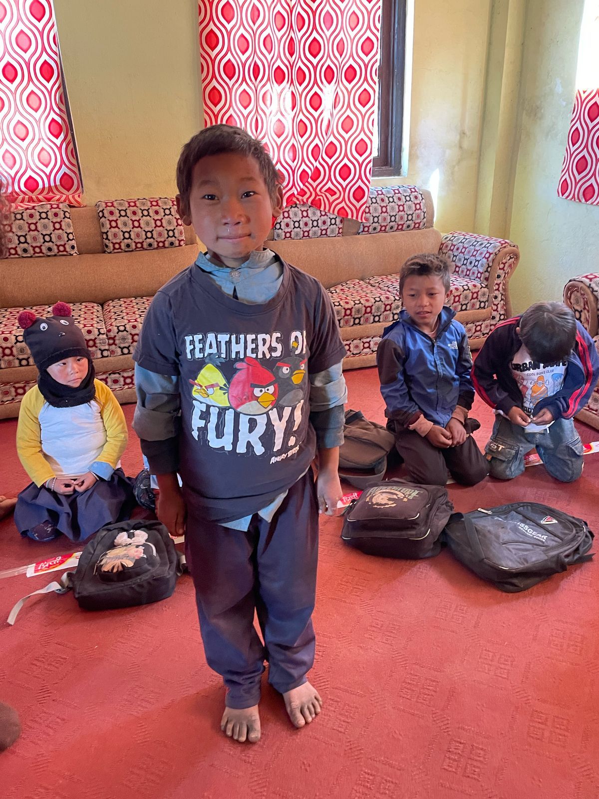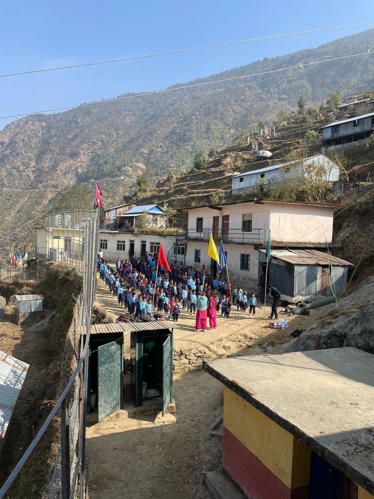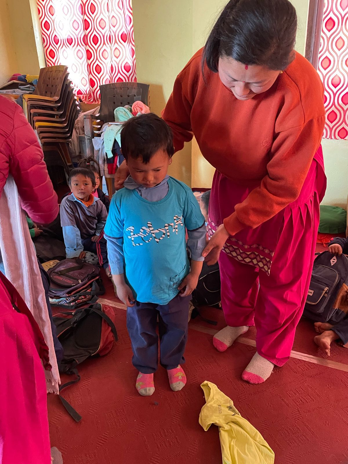 We were also able to implement another concern during our last visit. On our first visit to Grang , we didn't have enough children's clothing with us to give everyone something. launched the "Children clothes for Grang , so we traveled back to Nepal with three large bags full of clothes last autumn; These have now been brought to Grang . There were also booklets & pens for the students. The children's joy was huge - and the new clothing is a great relief for families, especially in the cold months.
