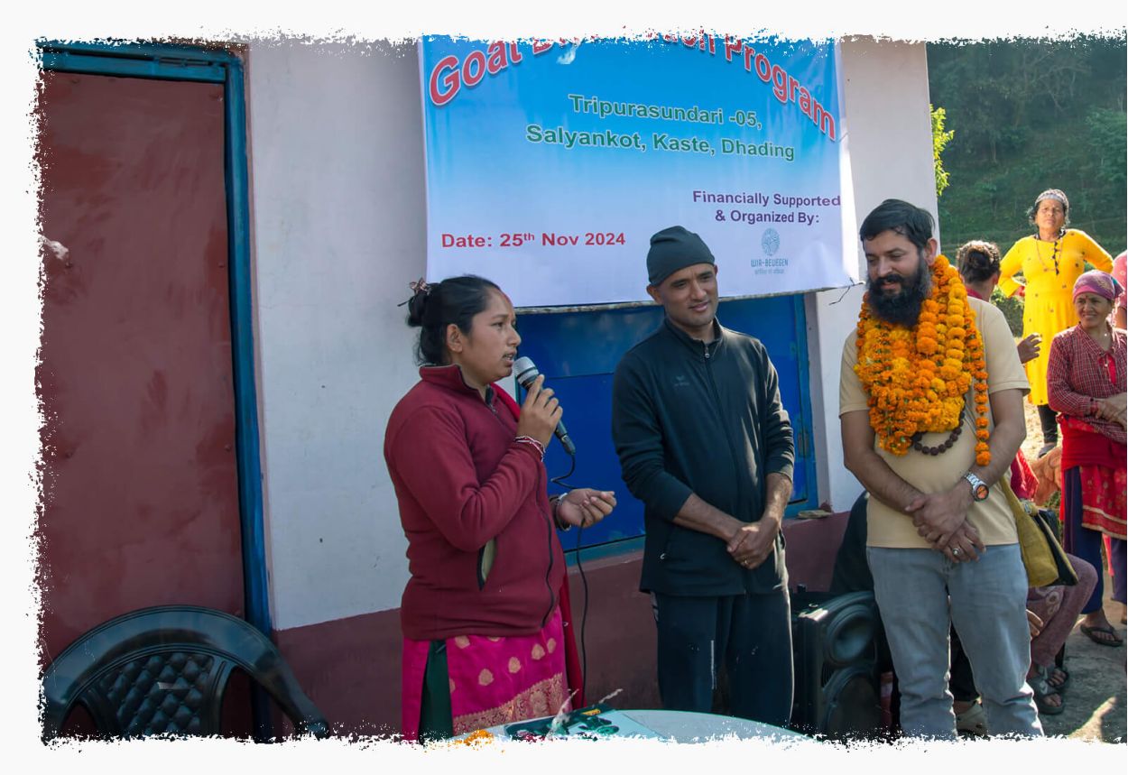 Im Jahr 2021 haben wir das "Goat Distribution Program" ins Leben gerufen, 2022 konnten wir dem Dorf Grang in der Region Langtang helfen; 2024 dem Dorf Kaste in der Dhading Region.